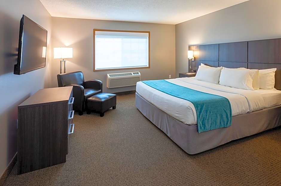 The hot tub and fireplace are the standout features of this suite. The unit has 2 beds.