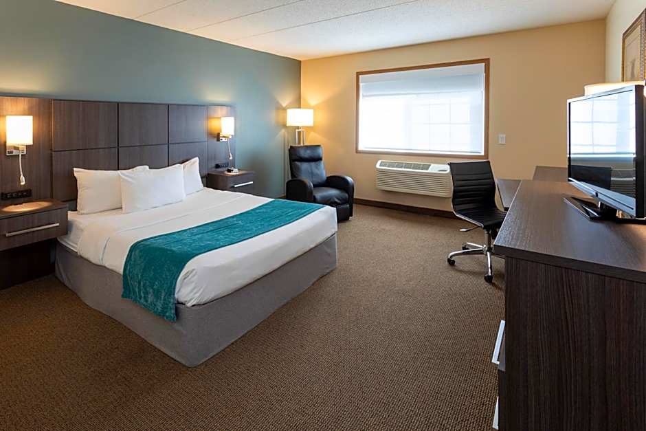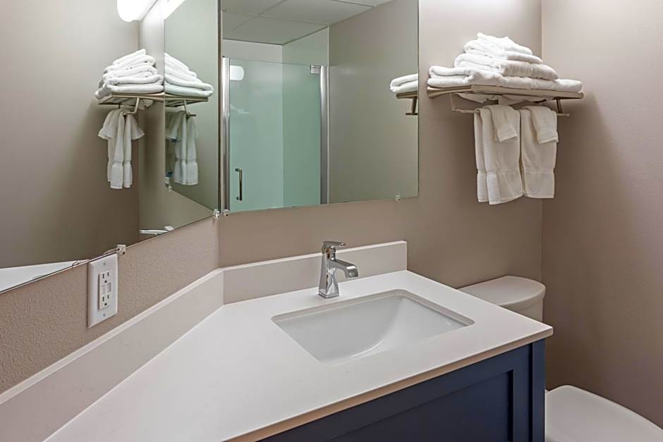The hot tub and fireplace are the standout features of this suite. The unit has 2 beds.